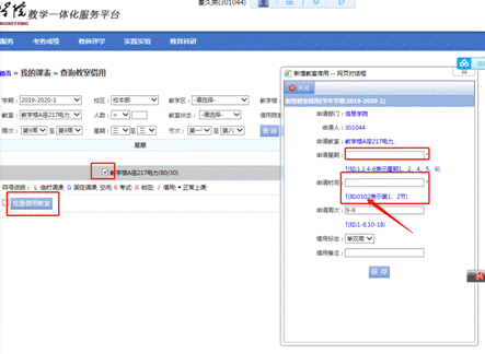 注:申请时间0102为1、2节,然后点击保存借用成功,此教室即进入审核状态,其他人不可借用。请大家合理利用教室资源,用多久借多久,请勿恶意锁定占用教室。如借用人时间变更在借用时间无需借用教室,请企业微信告知教务处秦老师,释放占用的教室资源,为其他人所用。