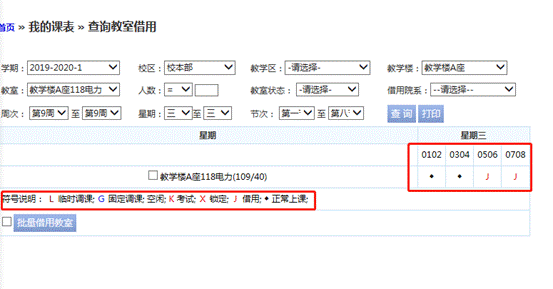 点击查询教室借用